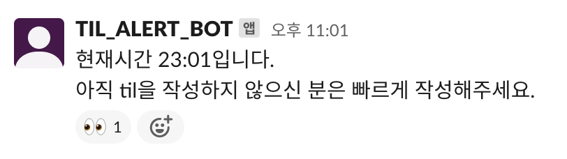 아직 til을 작성하지 않으신 분은 빠르게 작성해주세요."
