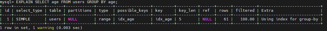 EXPLAIN SELECT age FROM users GROUP BY age;