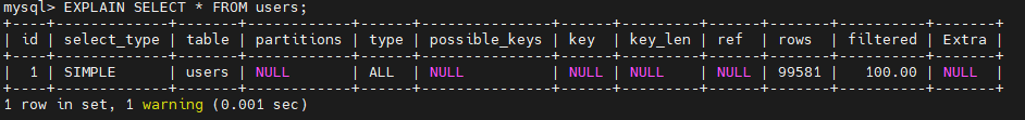 EXPLAIN SELECT * FROM users;