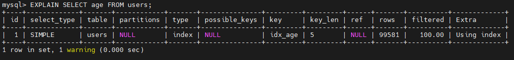 EXPLAIN SELECT age FROM users;