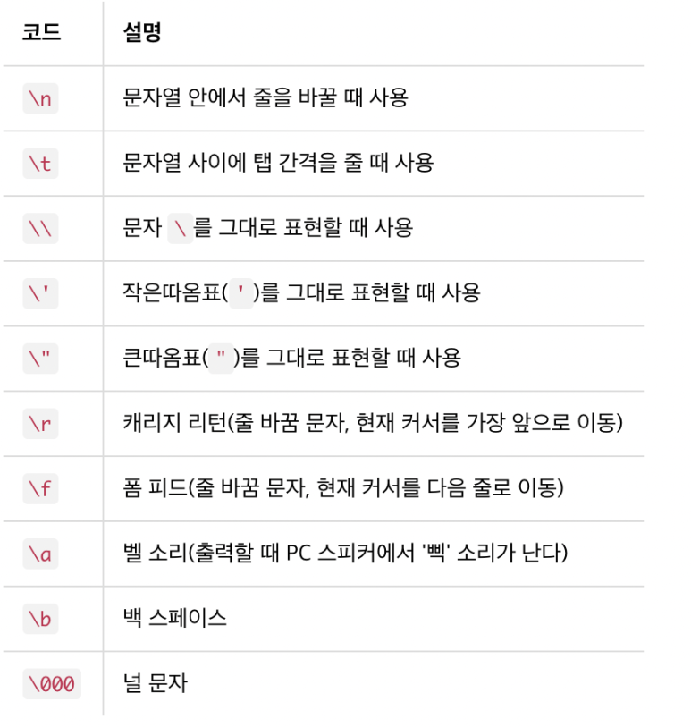 ※ 이스케이프 코드 (escape code)