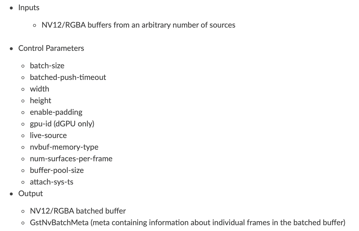 Gst-nvstreammux plugin은 multiple input sources로부터 생성되는 프레임들을 batch로 묶는 기능을 한다.
